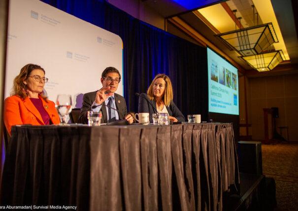 Assemblymember Dawn Addis, Senator Josh Becker, and Assemblymember Jaqui Irwin at the 2025 California Climate Policy Summit. Photo by Lara Aburamadan / Survival Media Agency.